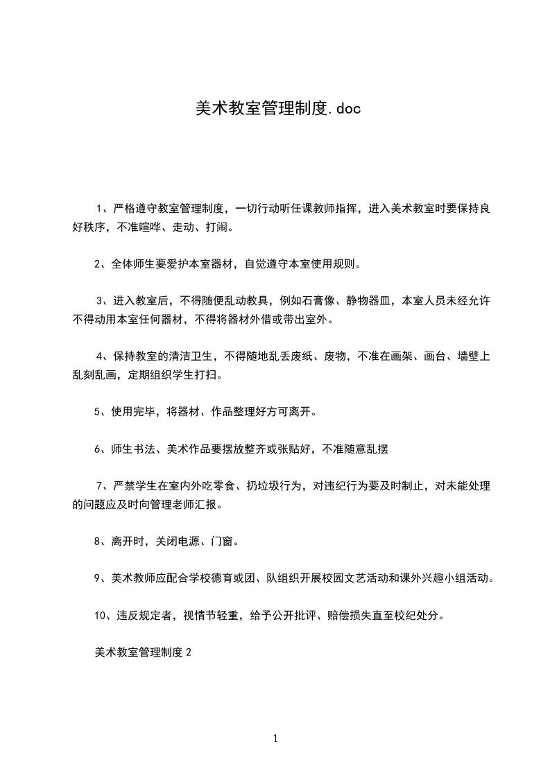 1、严格遵守教室管理制度,一切行动听任课教师指挥,进入美术教室时要保持良好秩序,不准喧哗、走动、打闹。