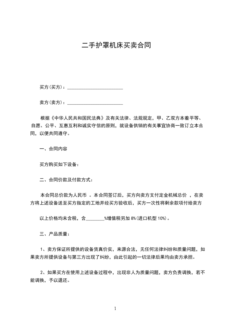 根据《中华人民共和国民法典》及有关法律、法规规定,甲、乙双方本着平等、自愿、公平、互惠互利和诚实守信的原则,就设备供销的有关事宜协商一致订立本合同,以便共同遵守。