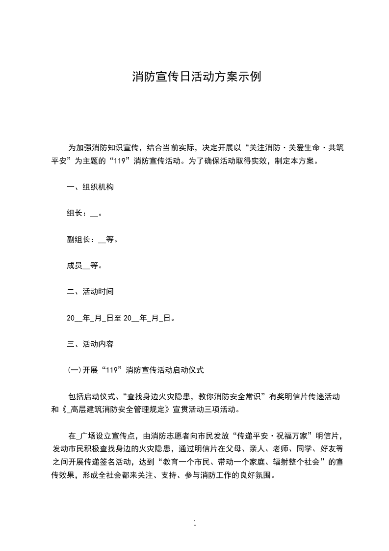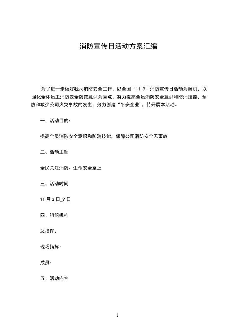 一、根据秦港公安字[20__]128号《关于开展“119”消防宣传教育活动的通知》文件精神,结合我公司实际,为确保此次活动落到实处,成立“11.9”消防日宣传活动小组,由主抓安全的副总领导,成员由综合部工作人员组成。