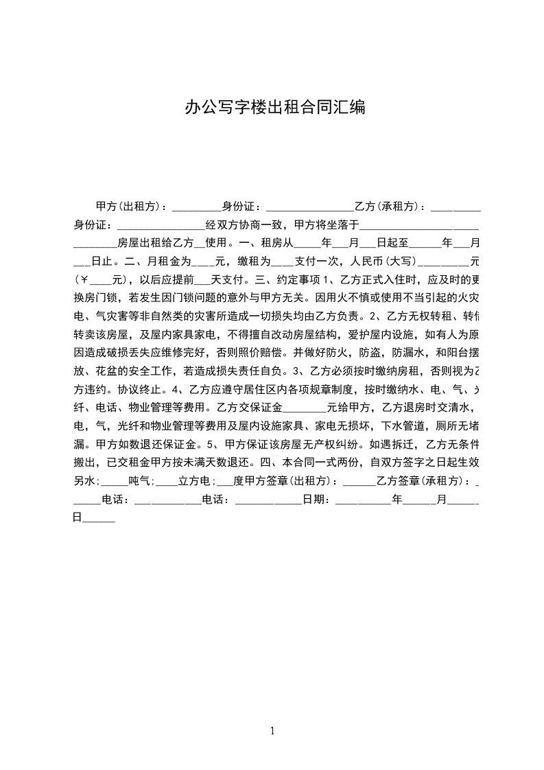 一.房屋位置及面积:该房屋坐落于 (以下简称该房屋),建筑面积 平方米。出租方将该房屋及相应设备(见附件)在良好的状态下租给乙方使用。