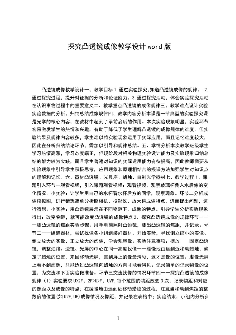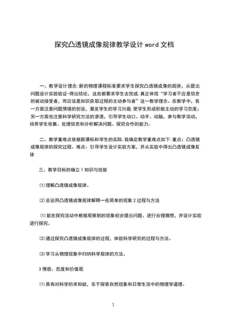 2、观察凸透镜成像的有关现象和收集实验数据,并从中归纳出凸透镜成像的规律,掌握科学探究的方法。