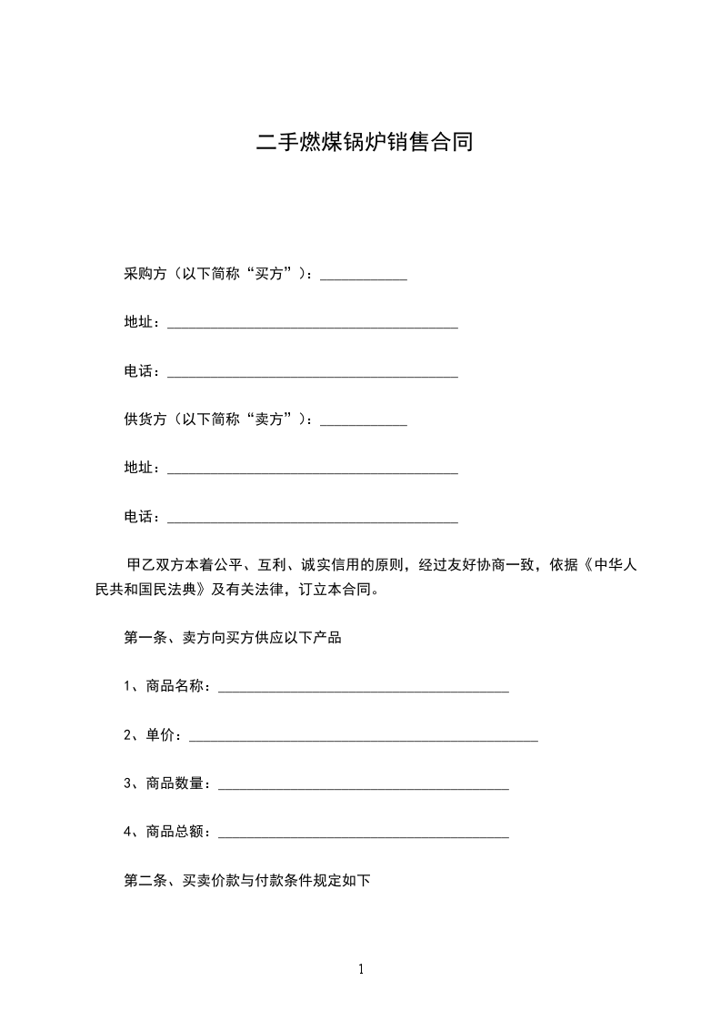 第一条、卖方向买方供应以下产品