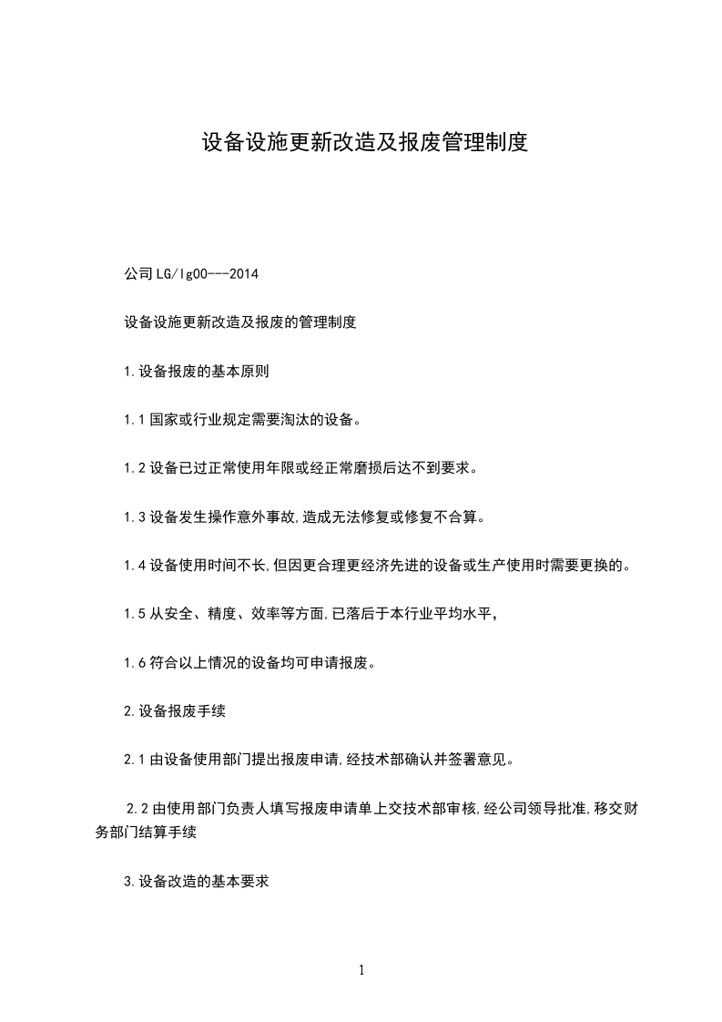 设备设施更新改造及报废的管理制度