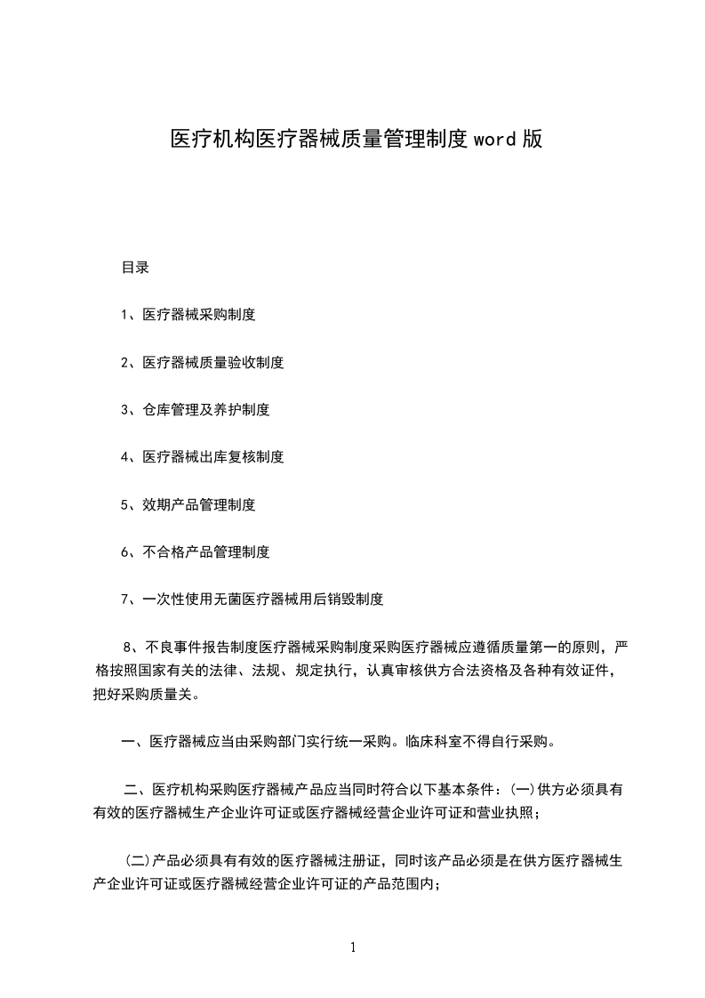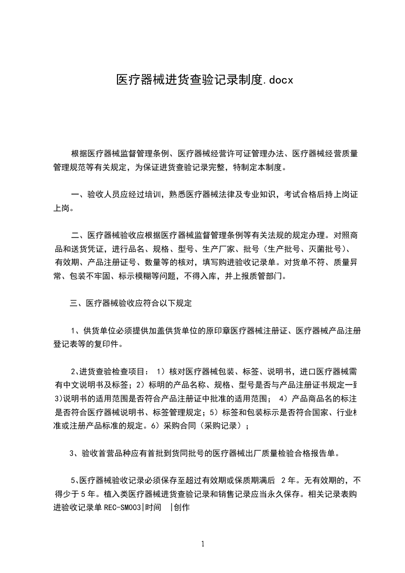 医疗器械经营企业质量管理制度清单(包括各种样本)目录