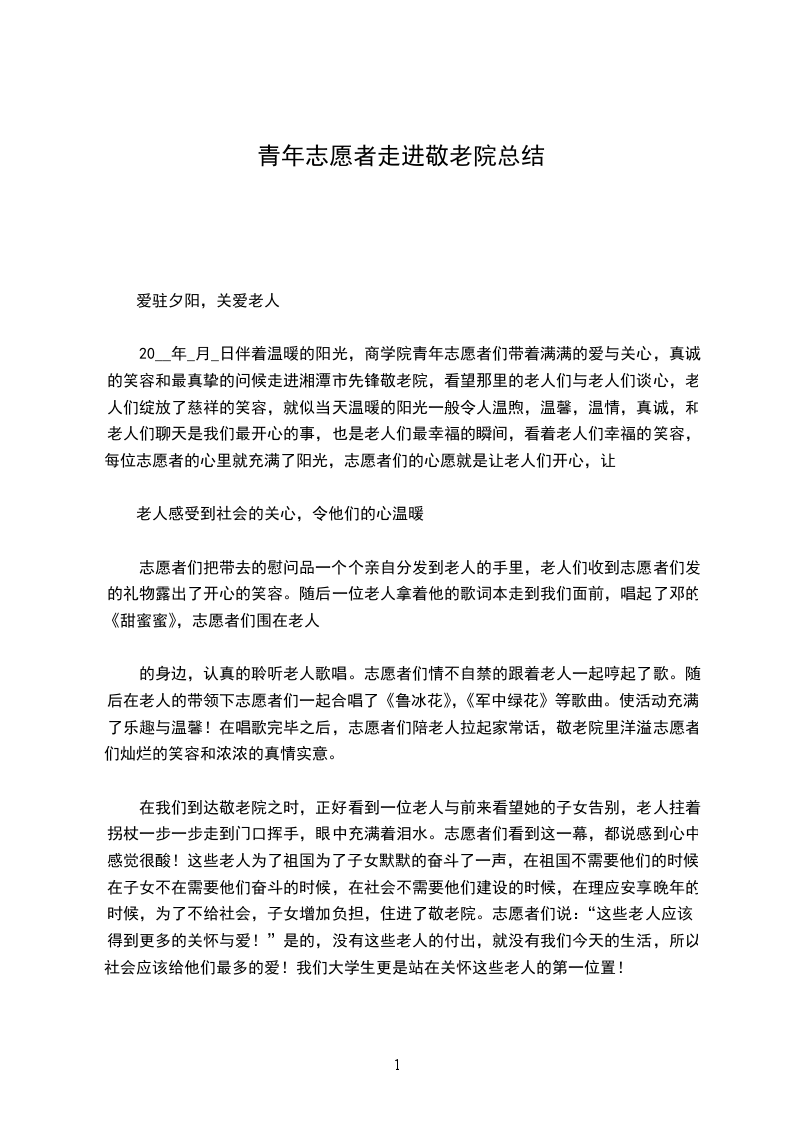 20__年_月_日伴着温暖的阳光,商学院青年志愿者们带着满满的爱与关心,真诚的笑容和最真挚的问候走进湘潭市先锋敬老院,看望那里的老人们与老人们谈心,老人们绽放了慈祥的笑容,就似当天温暖的阳光一般令人温煦,温馨,温情,真诚,和老人们聊天是我们最开心的事,也是老人们最幸福的瞬间,看着老人们幸福的笑容,每位志愿者的心里就充满了阳光,志愿者们的心愿就是让老人们开心,让