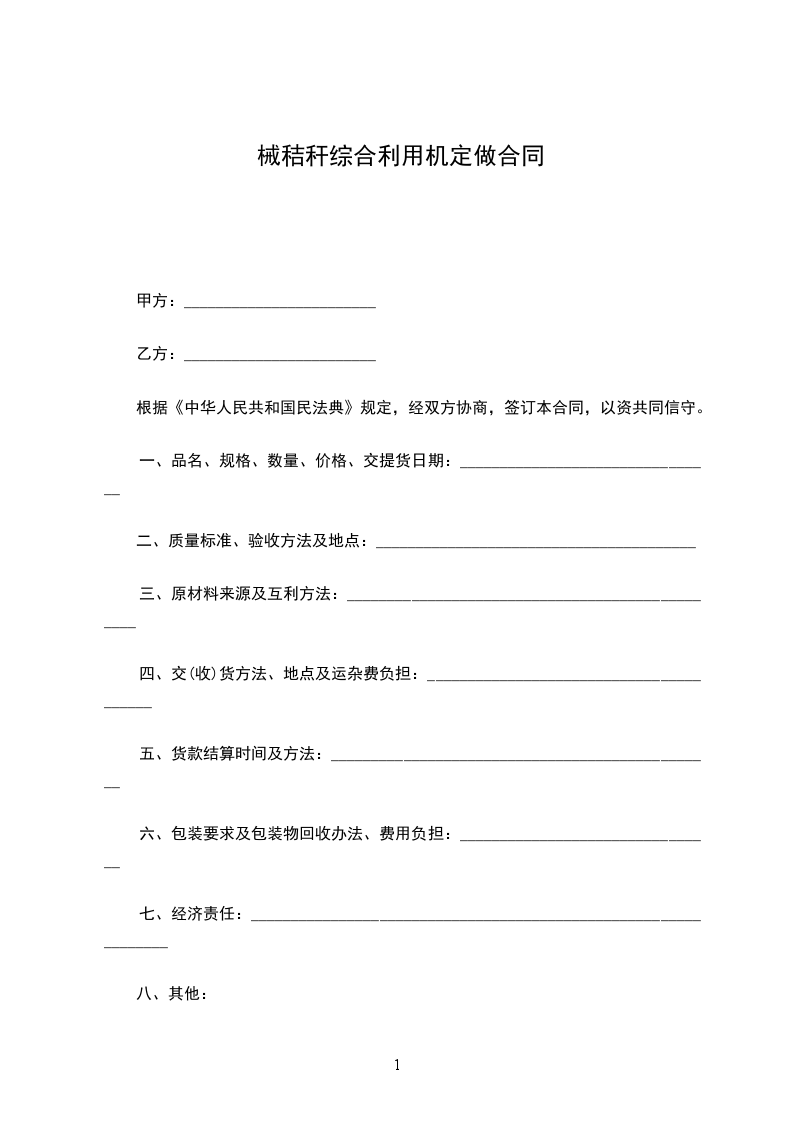 供、需双方为满足需方_____________________的需要,经充分协商,同意按下列条款订立本合同,双方共同遵守。