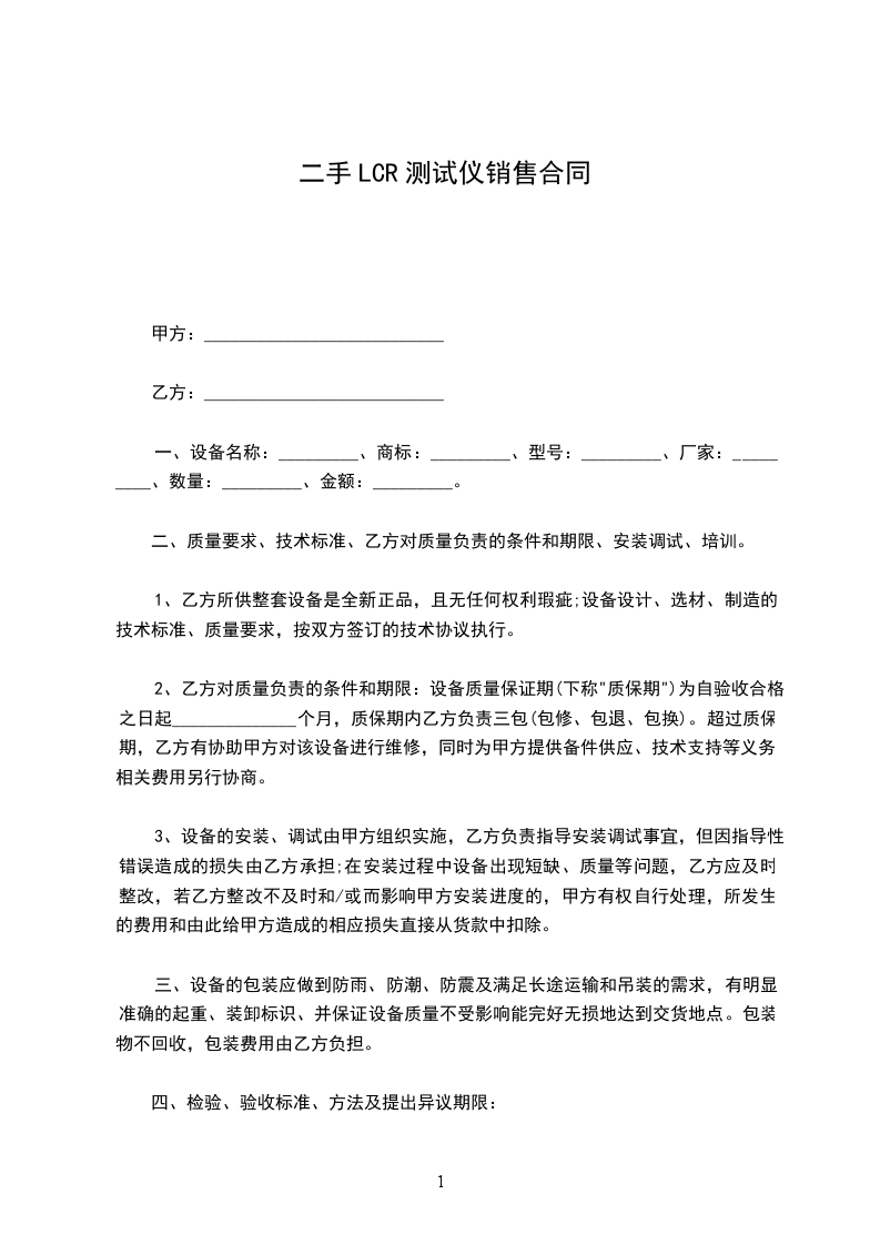一、设备名称:_________、商标:_________、型号:_________、厂家:_________、数量:_________、金额:_________。