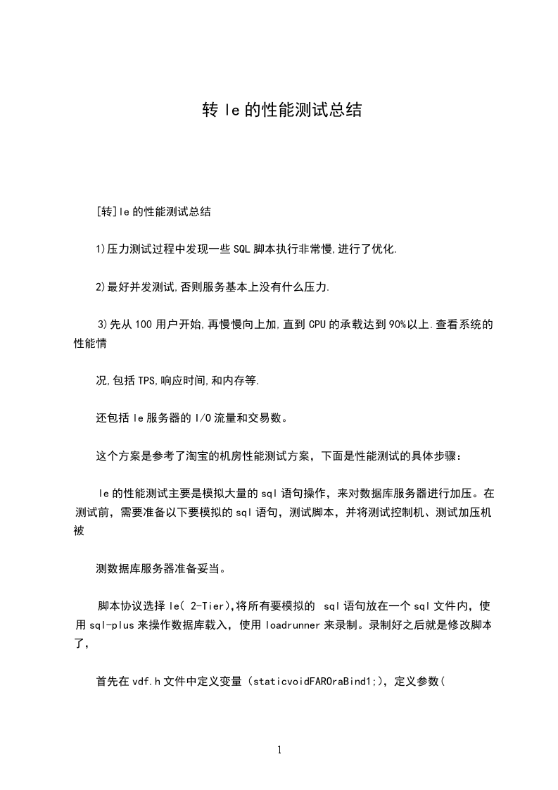 脚本协议选择le(2-Tier),将所有要模拟的sql语句放在一个sql文件内,使用sql-plus来操作数据库载入,使用loadrunner来录制。录制好之后就是修改脚本了,