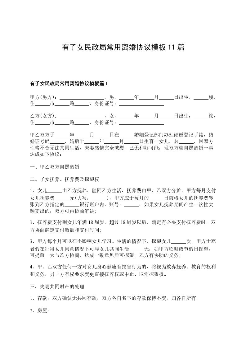 九、本协议一式三份,自婚姻登记处颁发离婚证之日起生效,男、女双方各执一份,婚姻登记机关存档一份。