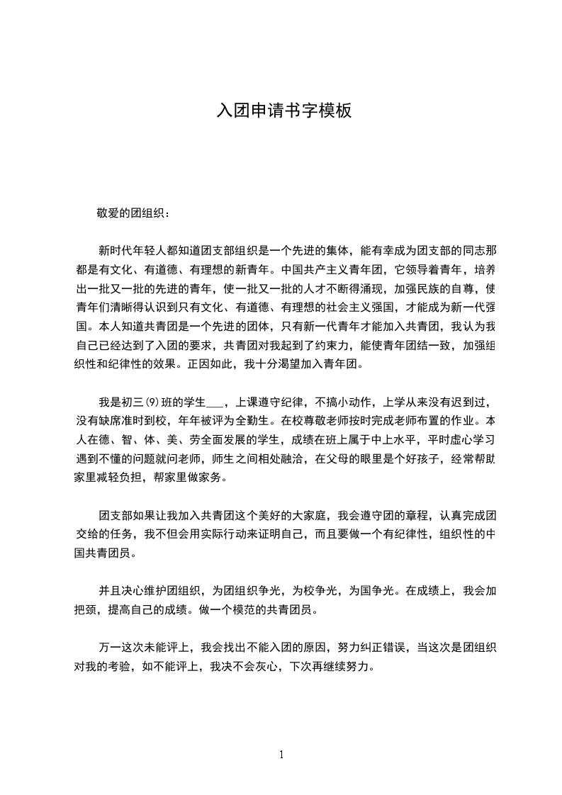希望团组织认真考虑和审查我,给我一次机会,加入团的大家庭,为团作贡献。此致