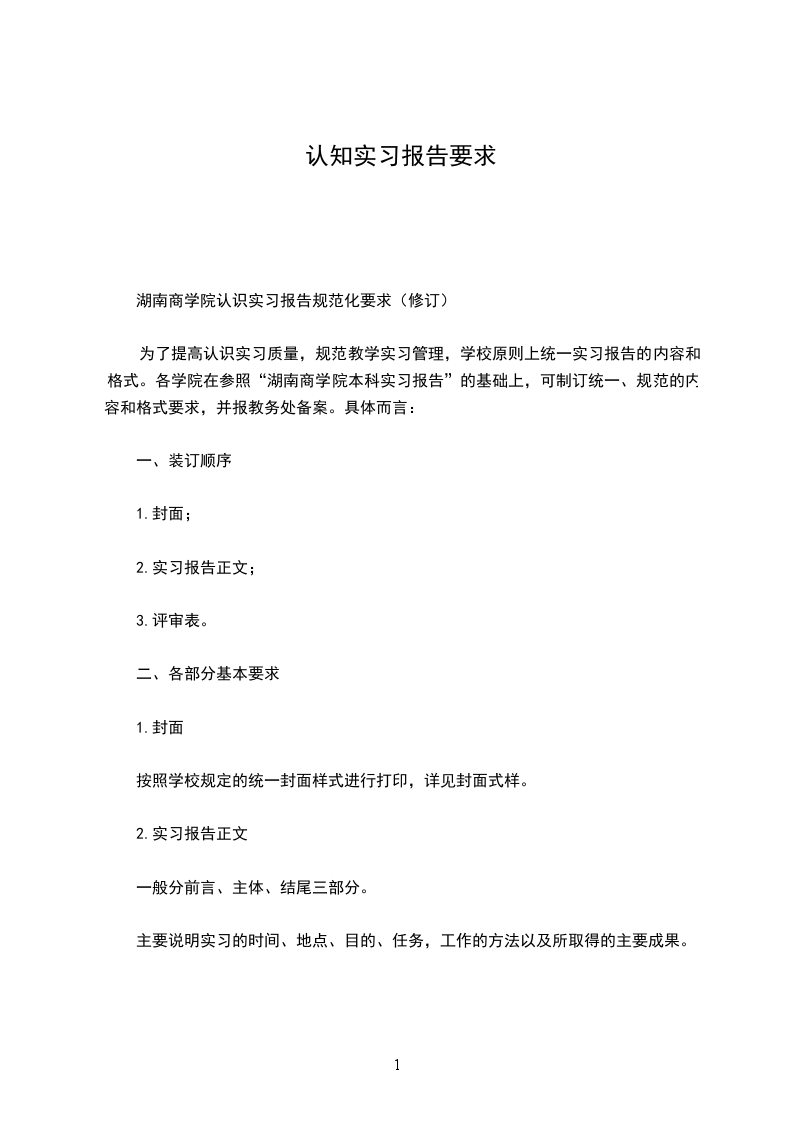湖南商学院认识实习报告规范化要求(修订)