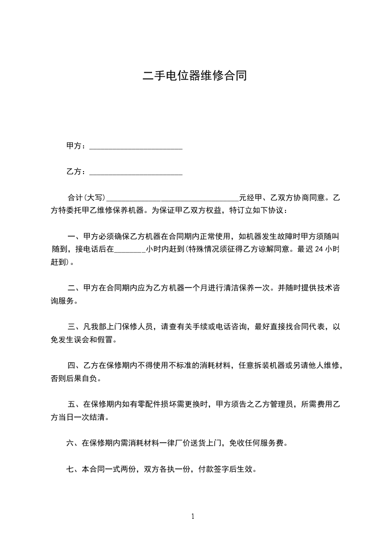1、本合同总价为:大写人民币____________元整。