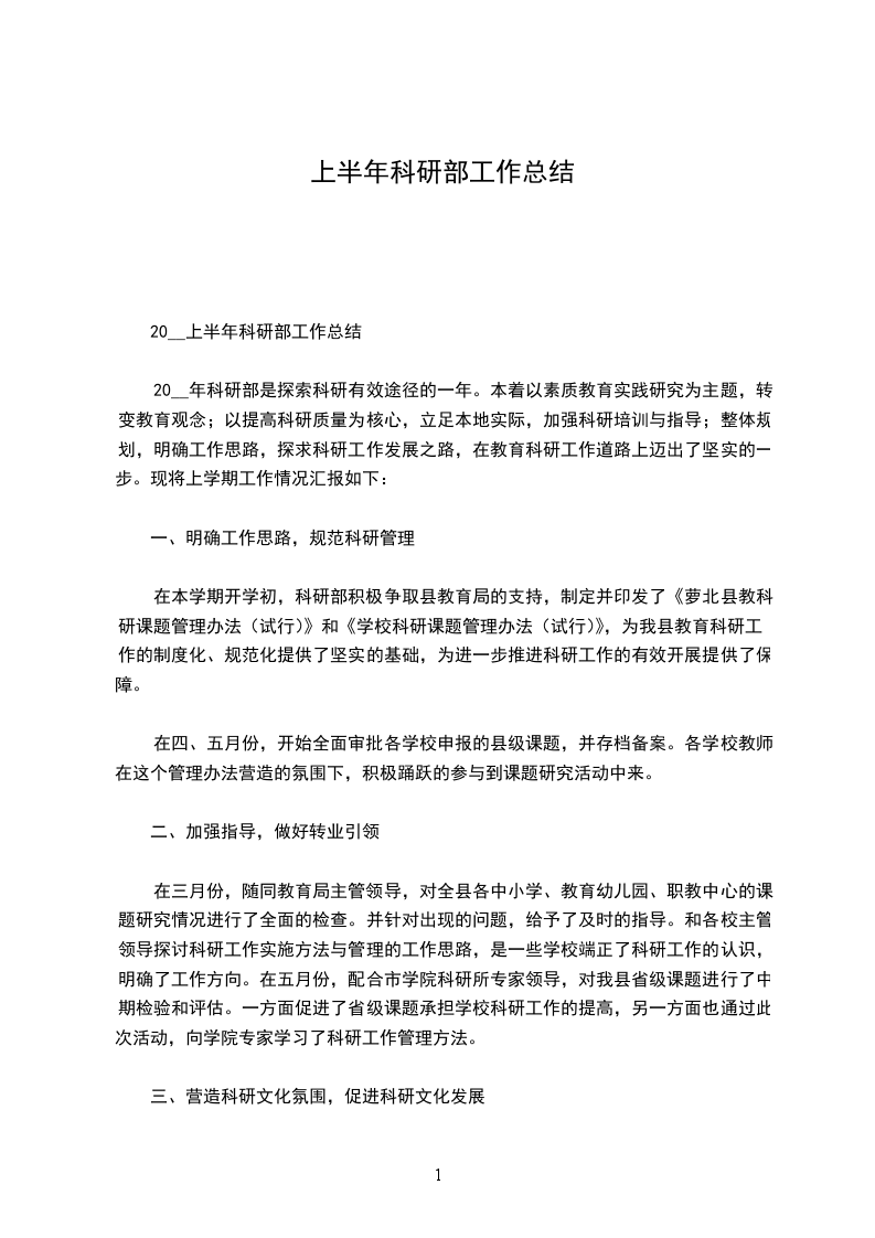 20__上半年科研部工作总结
