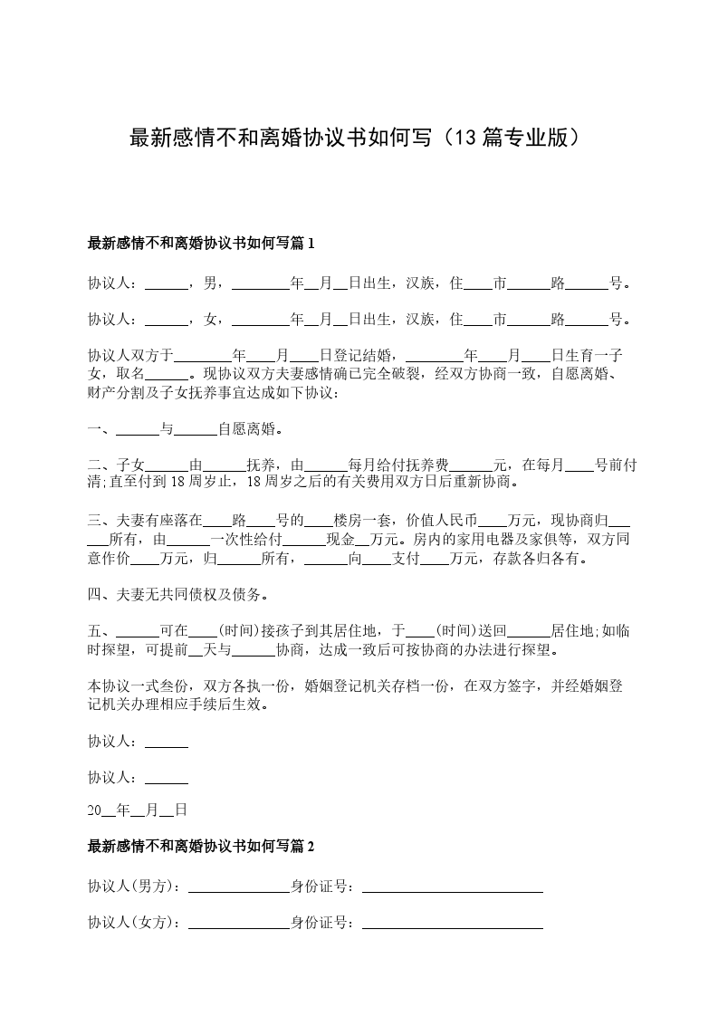 协议人_______向双方于_______年_______月_______日在_______民政局办理结婚登记手续,结婚证号为:_____________________。现因感情不和等原因,自愿离婚,经双方协商一致,对有关事项,依我国《民法典》的规定达成如下协议: