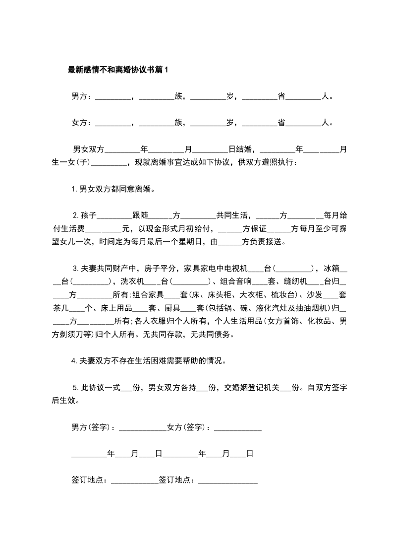 男方与女方于______年____月相识,并于______年____月____日在_________民政局登记结婚,婚后于______年____月____日生育一儿子,名_________。因____________________________致使夫妻双方感情破裂,且已无任何和好可能,现经双方自愿协商达成一致意见,订立离婚协议如下: