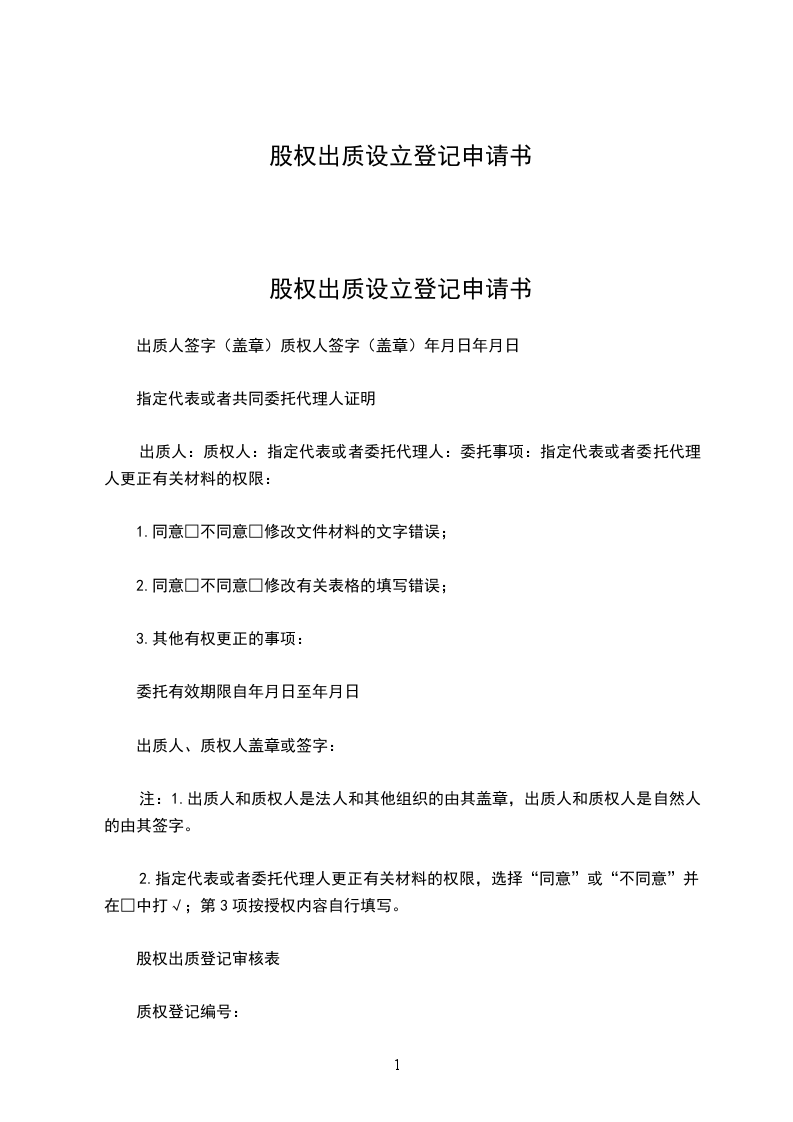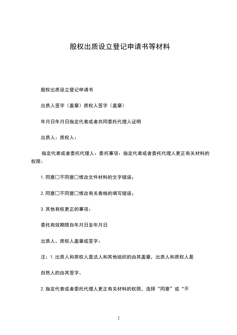 1、申请人签字或者盖章的《股权出质设立登记申请书》;