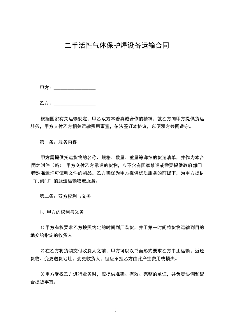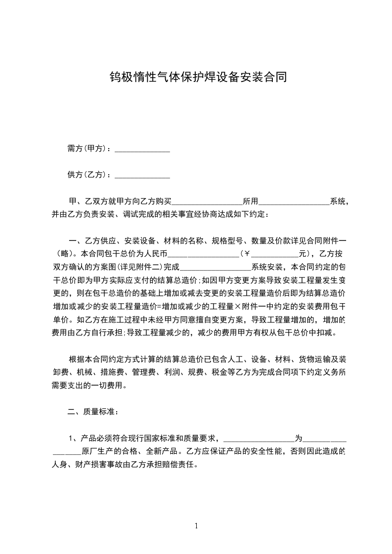 1、设备的价格:本工程采用总价包干的方式,合同包干总金额为:_______________元。