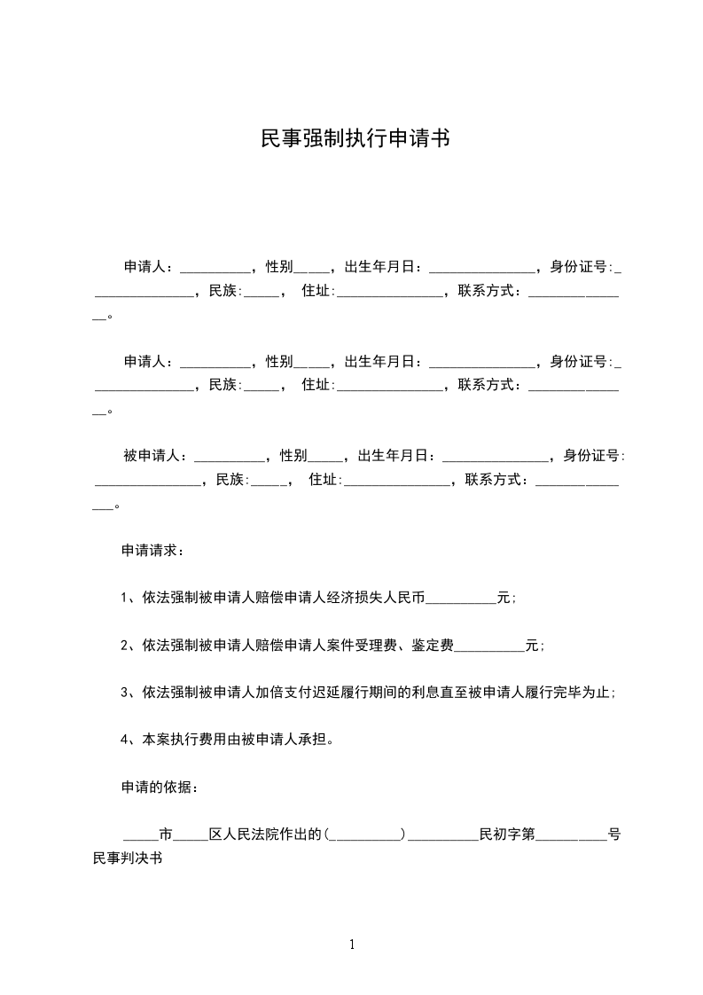 申请人:__________,性别_____,出生______年____月____日:_______________,身份证号:_______________,民族:_____, 住址:_______________,联系方式:_______________。