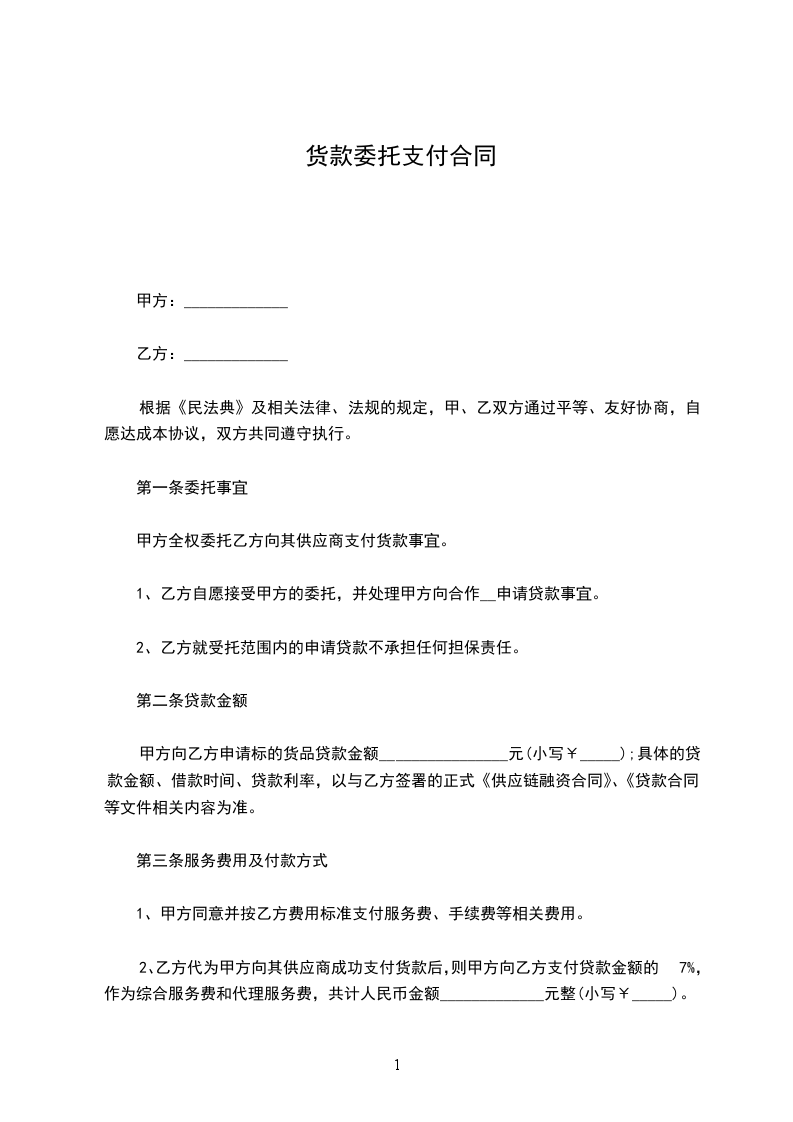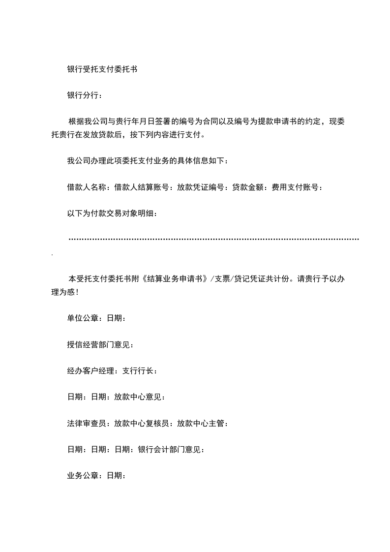 根据我公司与贵行年月日签署的编号为合同以及编号为提款申请书的约定,现委托贵行在发放贷款后,按下列内容进行支付。