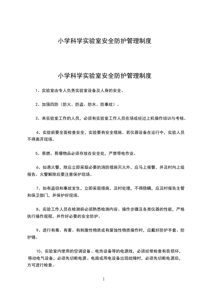 小学科学实验室安全防护管理制度