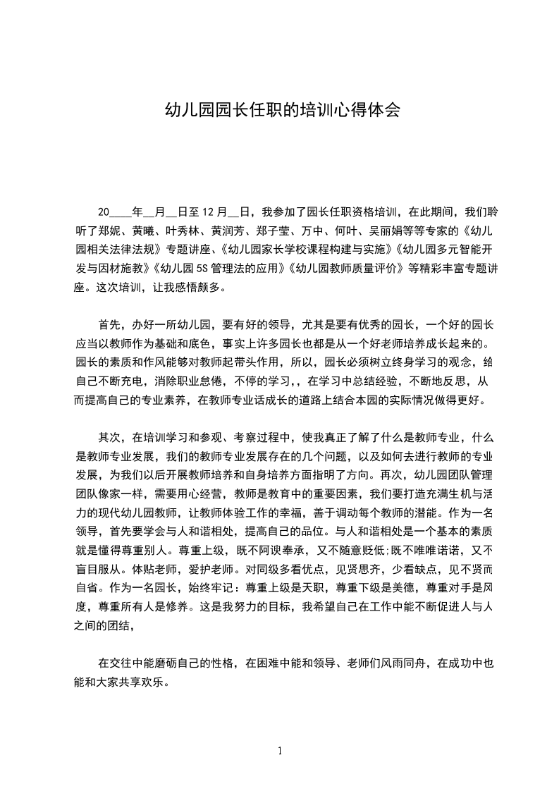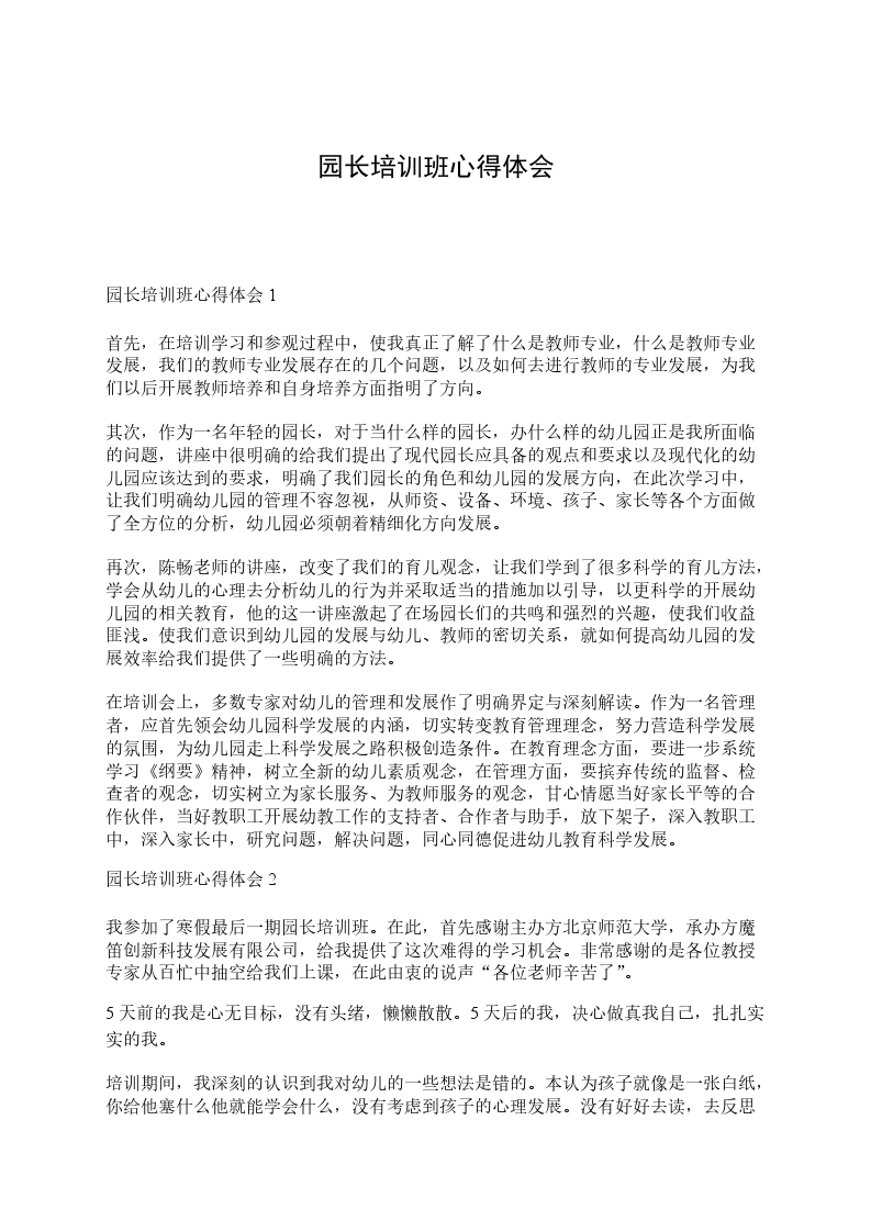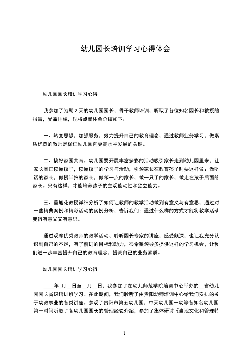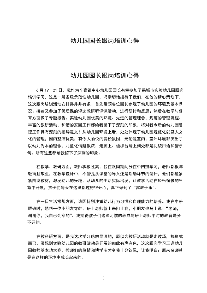 幼儿园园长跟岗培训心得