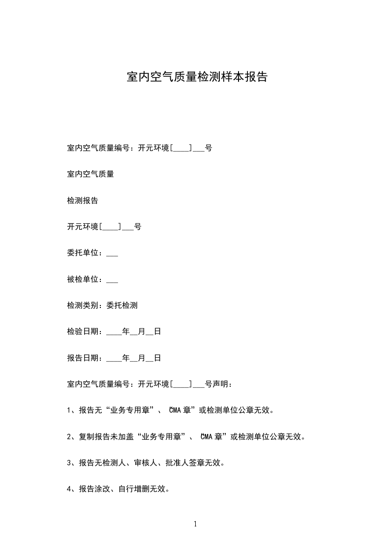 室内空气质量编号:开元环境[____]___号