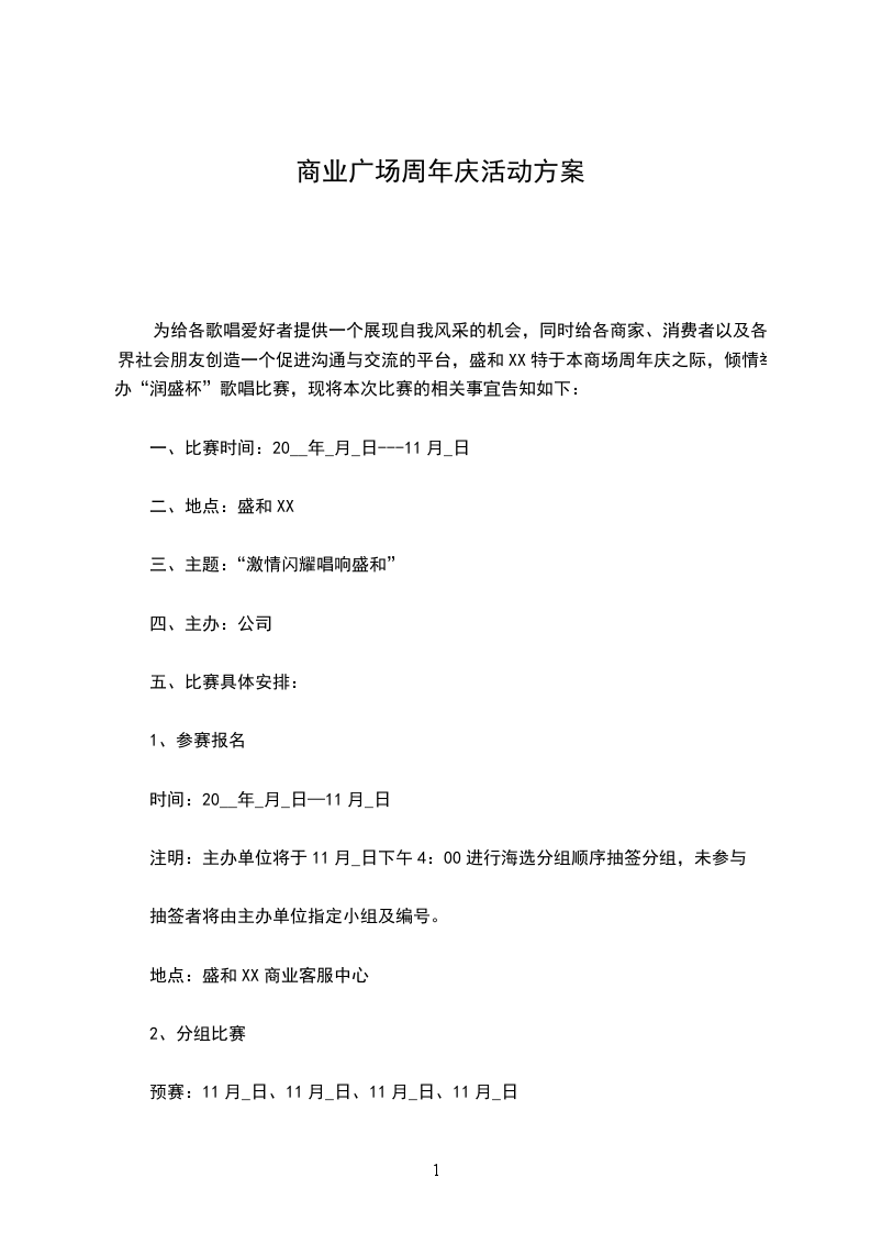 为给各歌唱爱好者提供一个展现自我风采的机会,同时给各商家、消费者以及各界社会朋友创造一个促进沟通与交流的平台,盛和XX特于本商场周年庆之际,倾情举办“润盛杯”歌唱比赛,现将本次比赛的相关事宜告知如下: