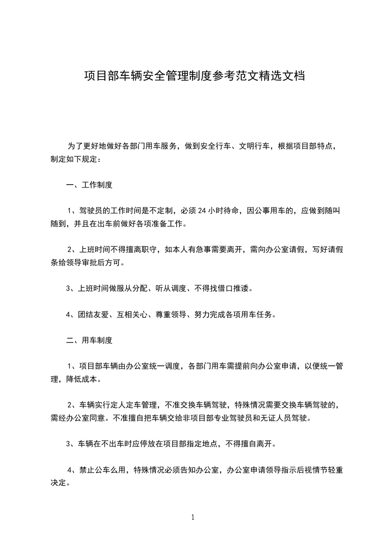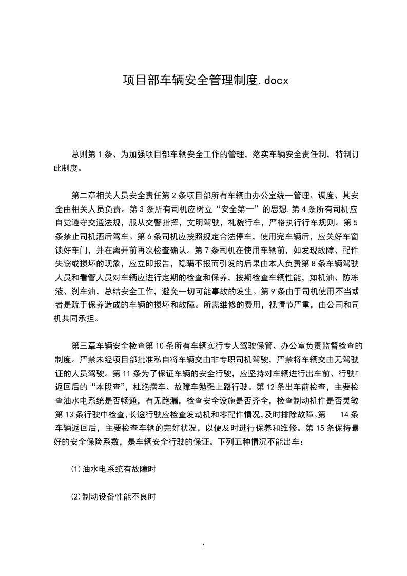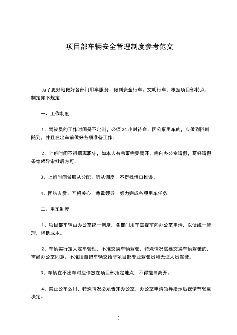 5、车辆在不出车时应停放在项目部指定地点,不得擅自离开。