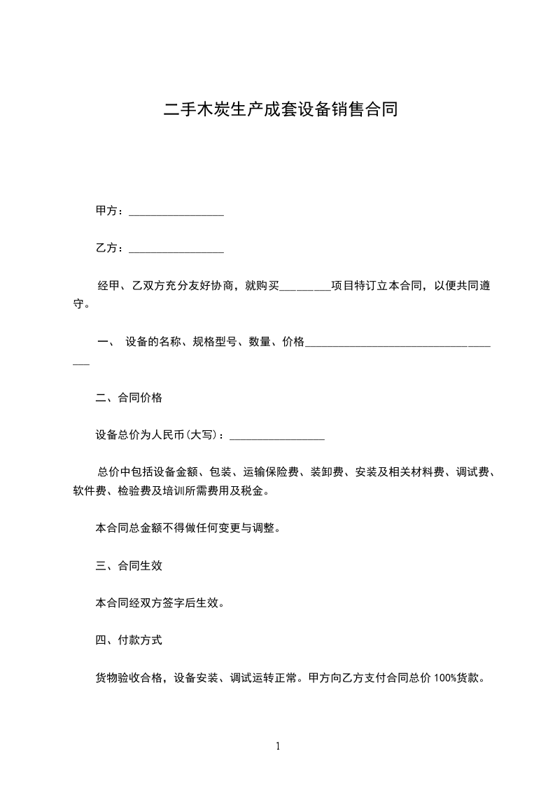 设备总价为人民币(大写):_________________