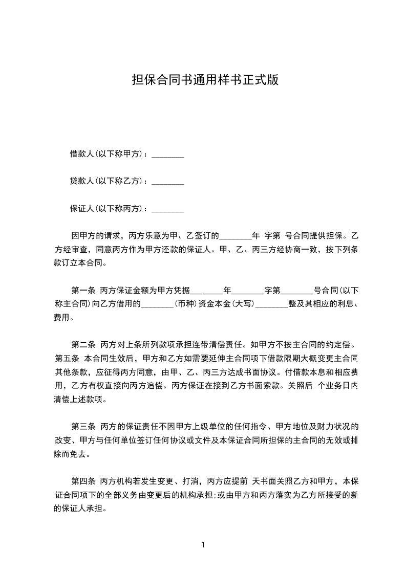 保证人(以下简称甲方):_________法定代表人:_________住所:_________电话:_________传真:_________XX编码:_________