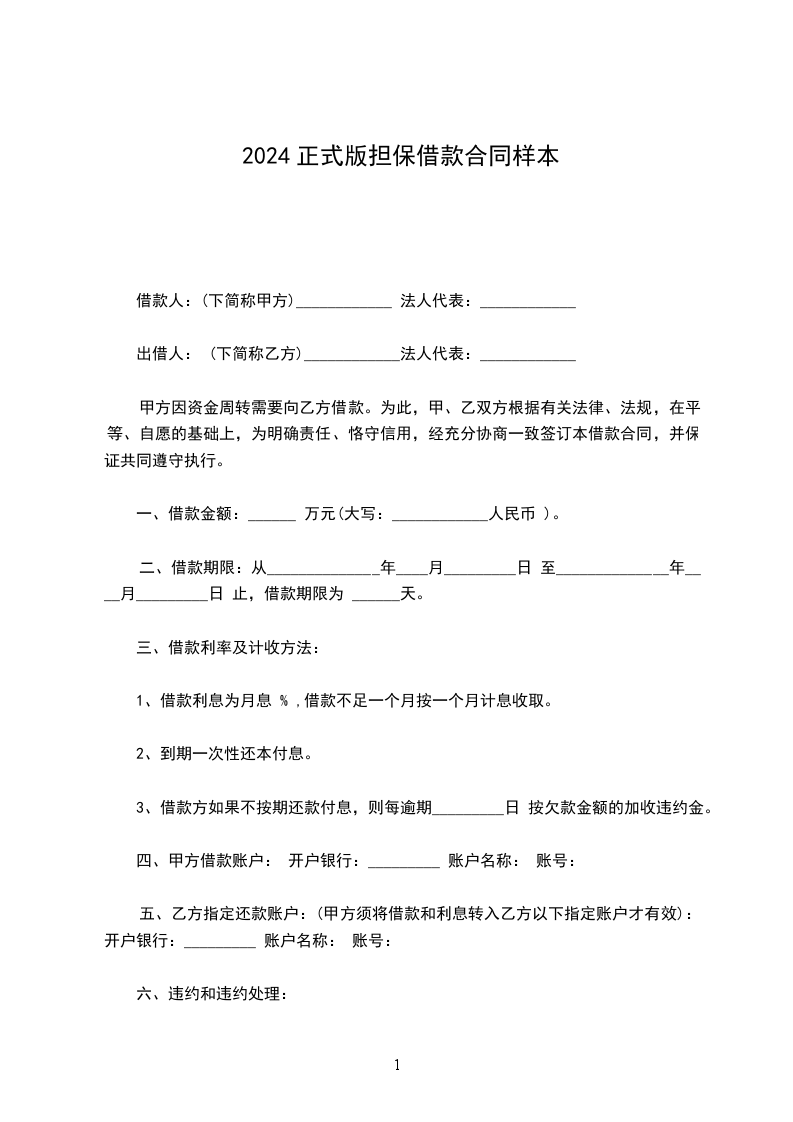 一、根据主合同第_________条、第_________条的有关规定,乙方(为进行_________项目)在_________期内向丙方借用_________币种_________元(大写)本金,相应的利息为 _________(币种)_________元(大写)。甲方愿意就此本金加利息的_________%向丙方提供担保,保证金额总额为 _________(币种)_________元整。