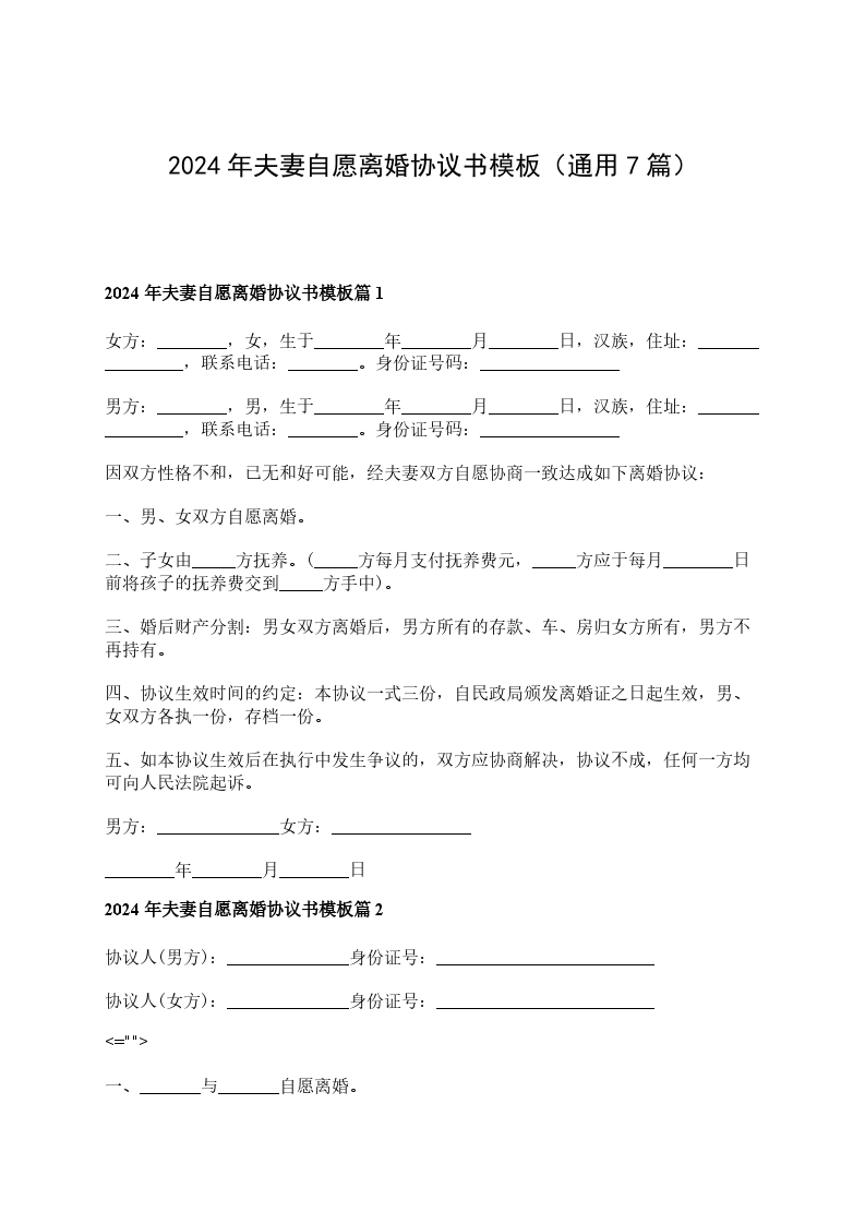 七、本协议一式_____份,男女双方各执_____份,自婚姻登记机关颁发《离婚证》之日生效。