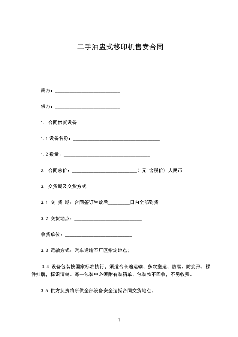 3.5 供方负责将所供全部设备安全运抵合同交货地点。