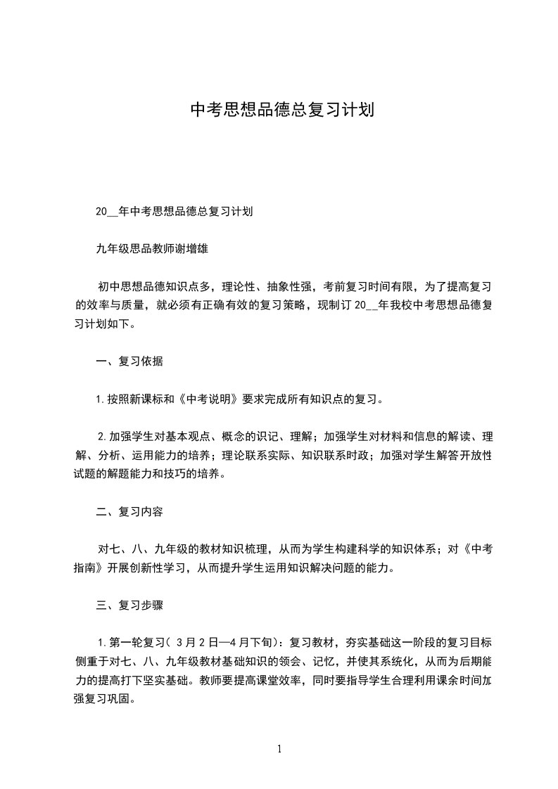 初中思想品德知识点多,理论性、抽象性强,考前复习时间有限,为了提高复习的效率与质量,就必须有正确有效的复习策略,现制订20__年我校中考思想品德复习计划如下。