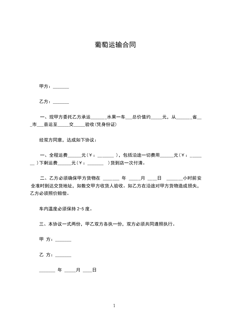 一、现甲方委托乙方承运_______水果一车___总价值约_____元,从_______省___市___县运至_____交_____验收(凭身份证)