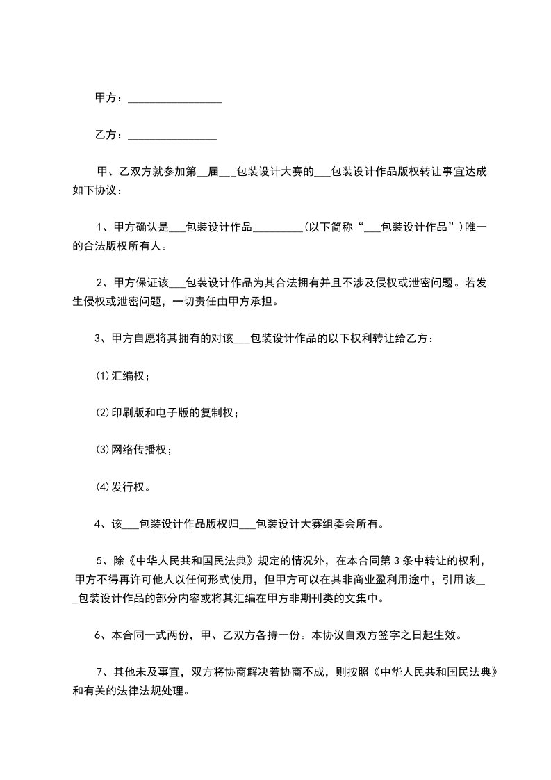 1、 乙方对设计完成的作品享有著作权。甲方将委托设计的所有费用结算完毕后,乙方可将作品著作权转让给甲方)。但乙方保留用于参展、评选的权利。