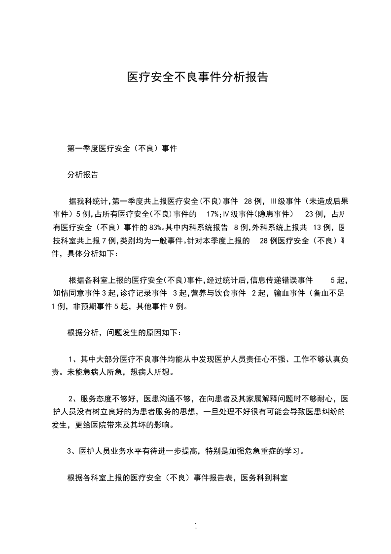 第一季度医疗安全(不良)事件