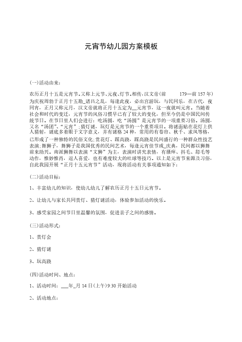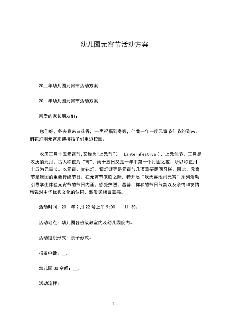 20__年幼儿园元宵节活动方案