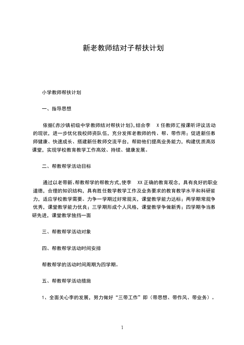 小学教师帮扶计划