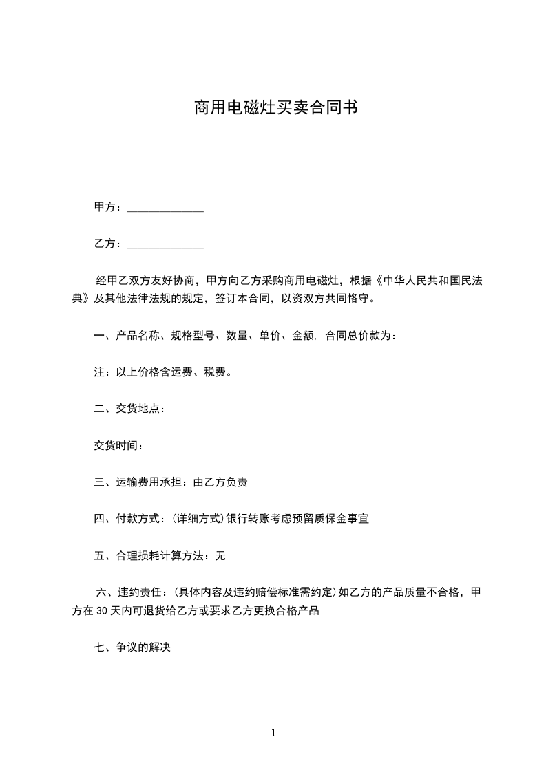 经甲乙双方友好协商,甲方向乙方采购商用电磁灶,根据《中华人民共和国民法典》及其他法律法规的规定,签订本合同,以资双方共同恪守。