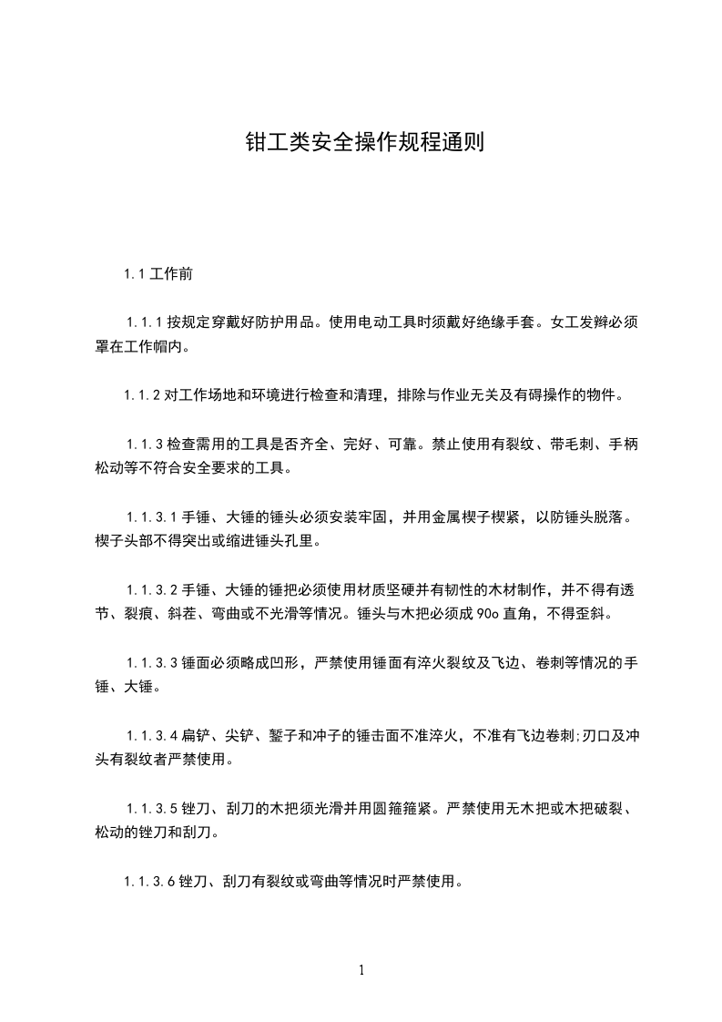 1、遵守“一般钳工”安全操作规程,严格按造钳工常用工具和设备安全操作规程进行操作。