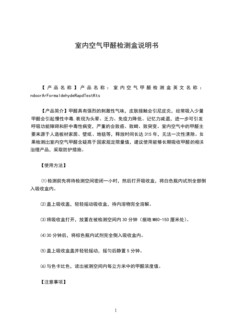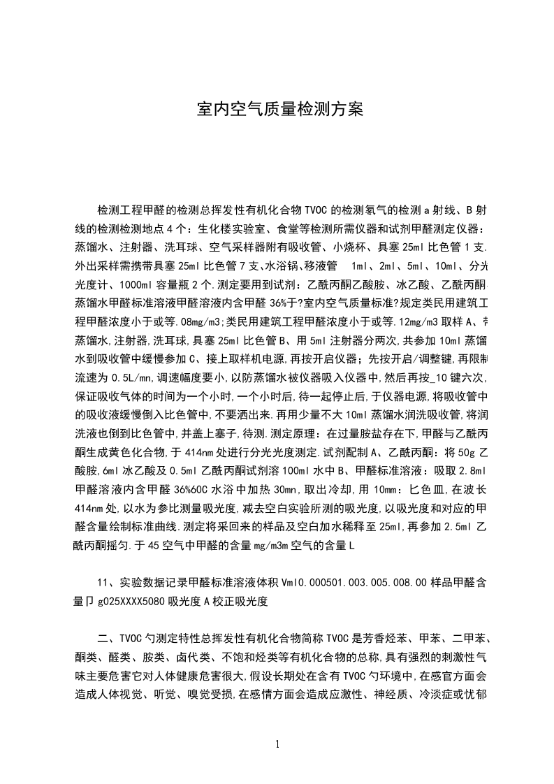 室内空气检测结果