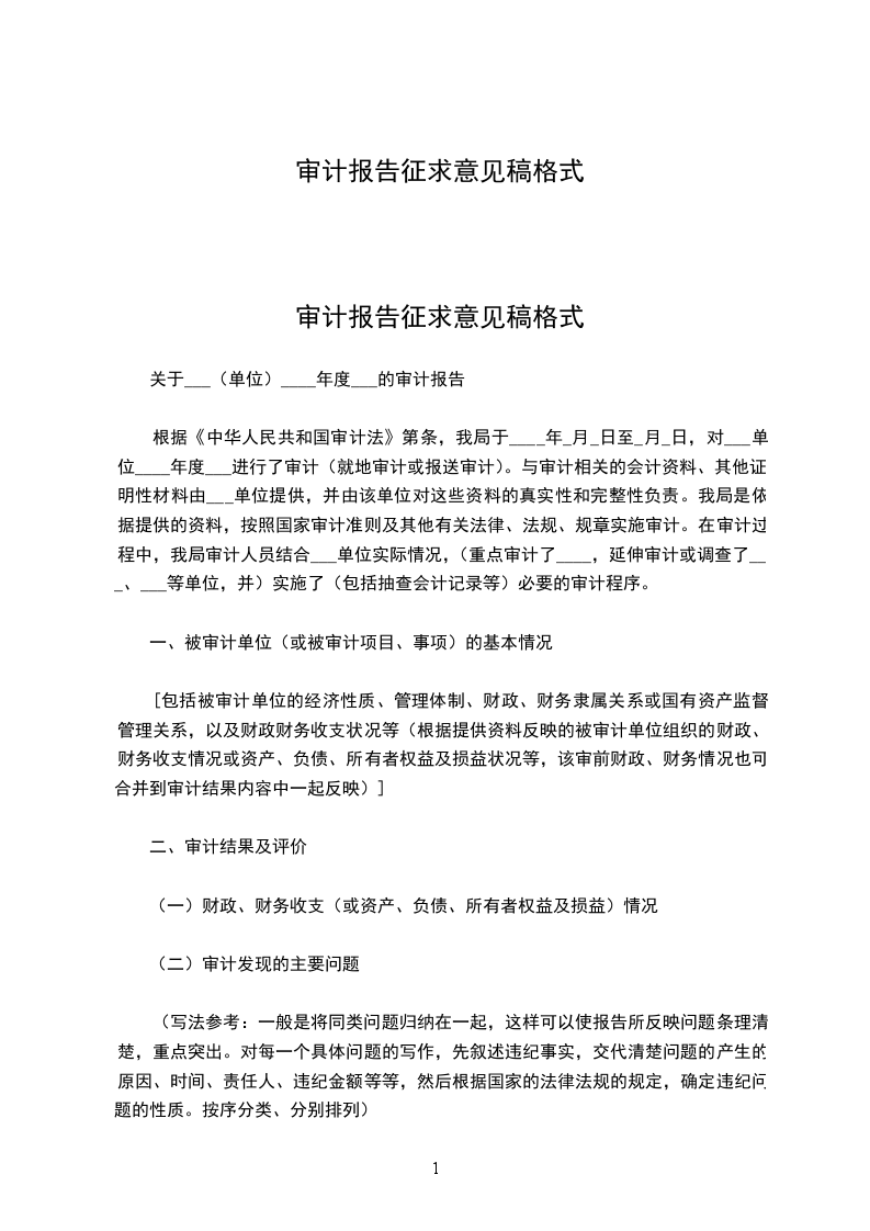 审计报告征求意见稿格式