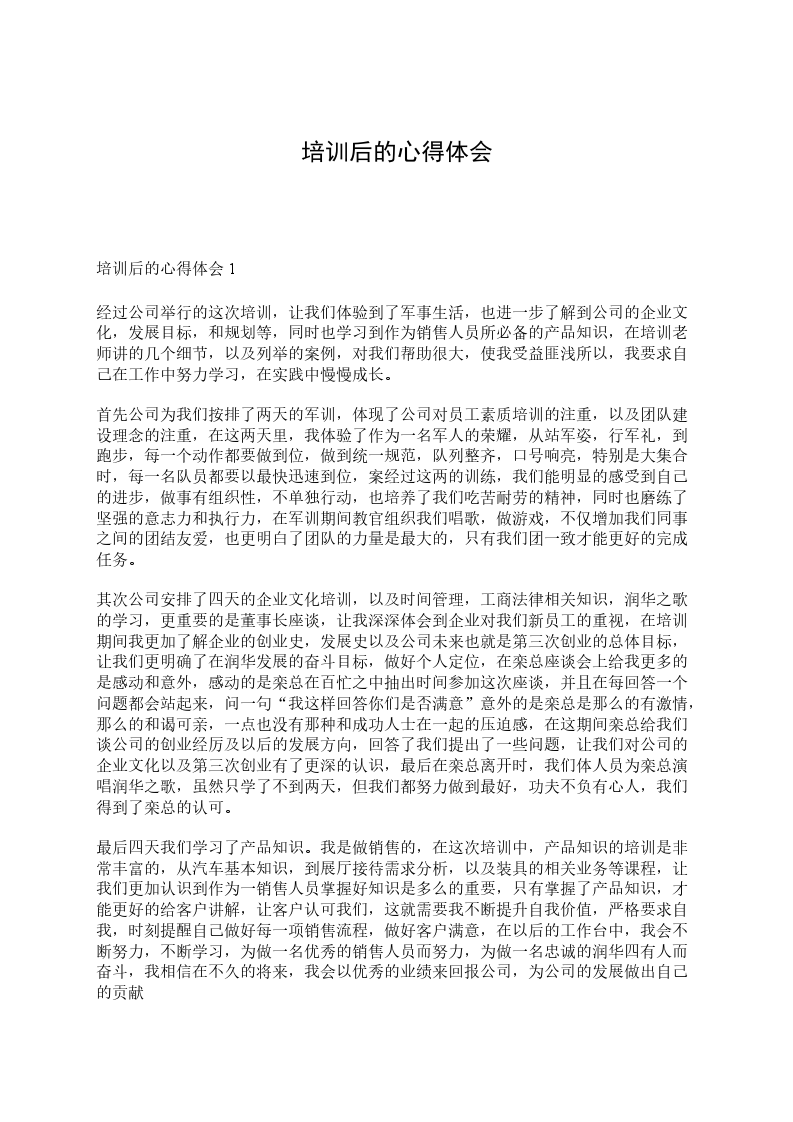 我认为本次军训不但提高鼓舞了大家的士气与工作热情热情,同时也让大家明白了榜样就在身边,只要努力训练专业技能提高个人综合素质同样可以成为大家的工作榜样。我为在这样一个公司而感到骄傲和自豪,通过这次军训对每位员工的素质都会有很大的提高,员工们的素质提高了,我相信公司的面貌也会焕然一新,我们的公司明天会更加辉煌!
