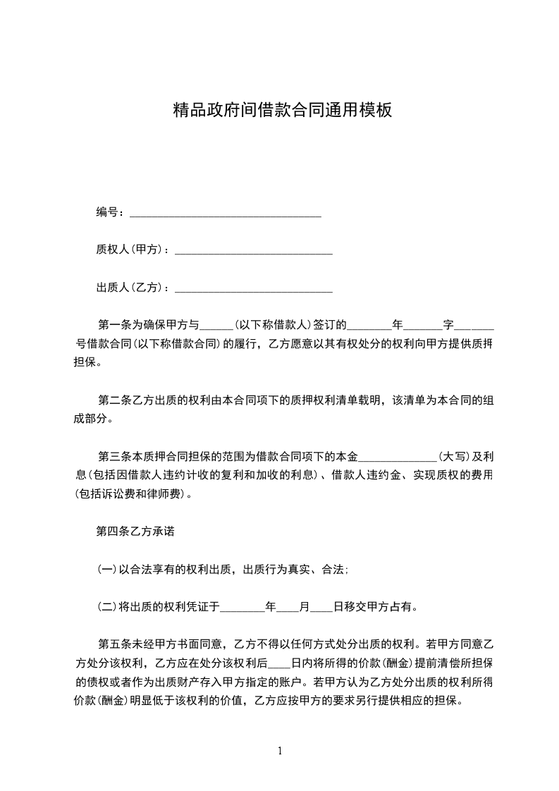 第一条为确保甲方与______(以下称借款人)签订的________年_______字_______号借款合同(以下称借款合同)的履行,乙方愿意以其有权处分的权利向甲方提供质押担保。