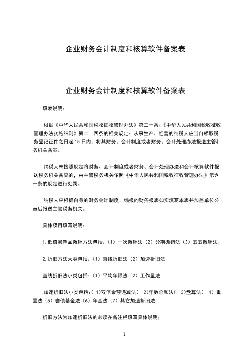 企业财务会计制度和核算软件备案表