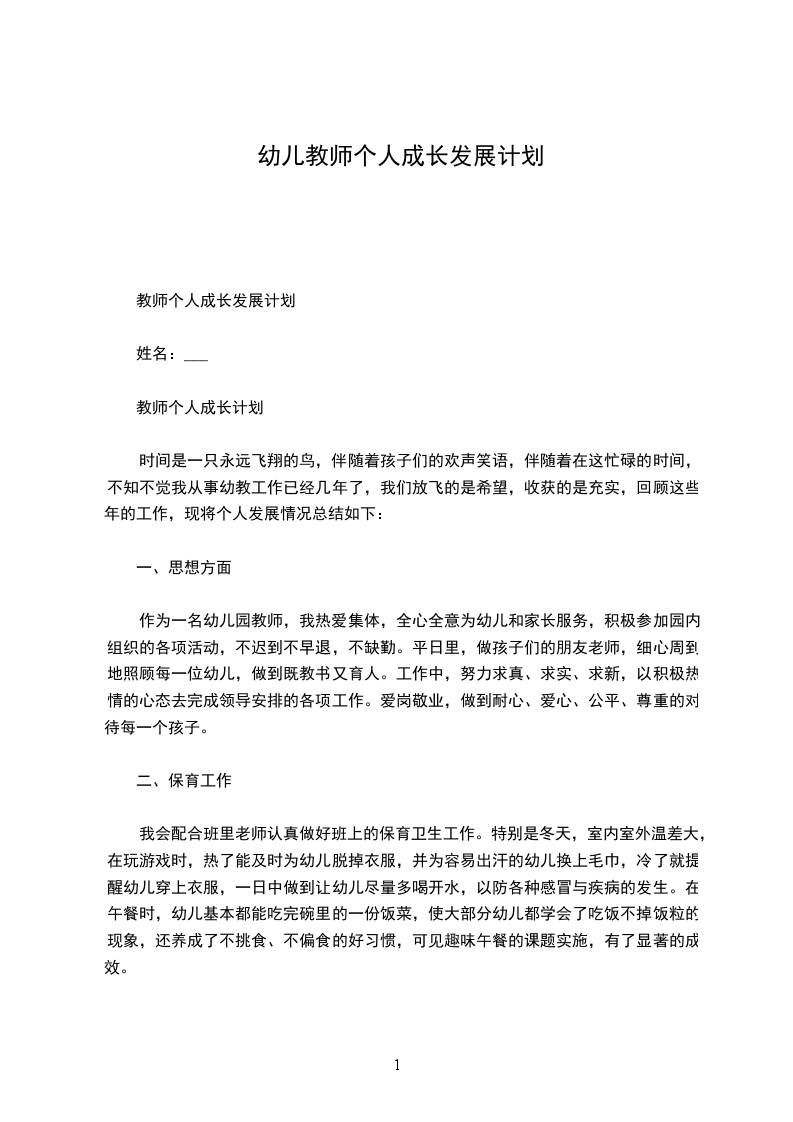 时间是一只永远飞翔的鸟,伴随着孩子们的欢声笑语,伴随着在这忙碌的时间,不知不觉我从事幼教工作已经几年了,我们放飞的是希望,收获的是充实,回顾这些年的工作,现将个人发展情况总结如下: