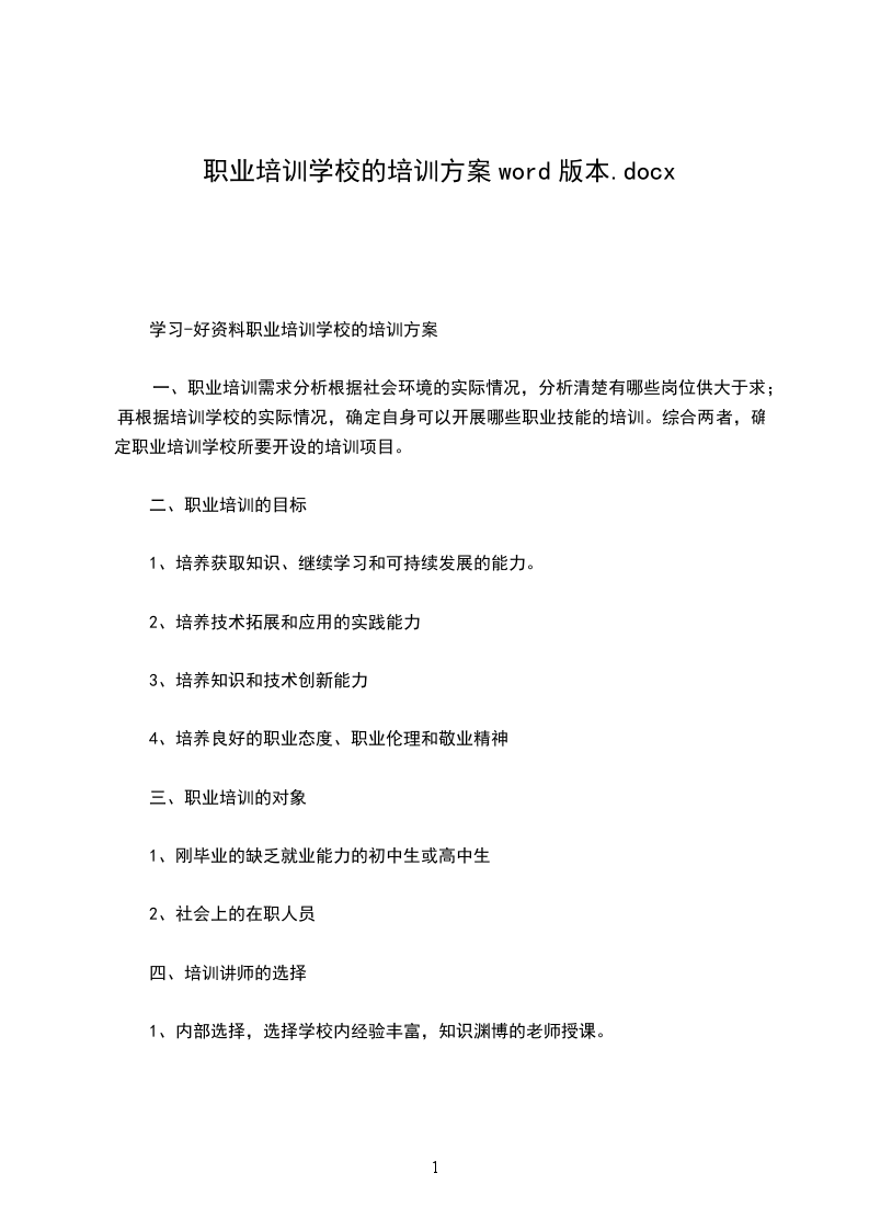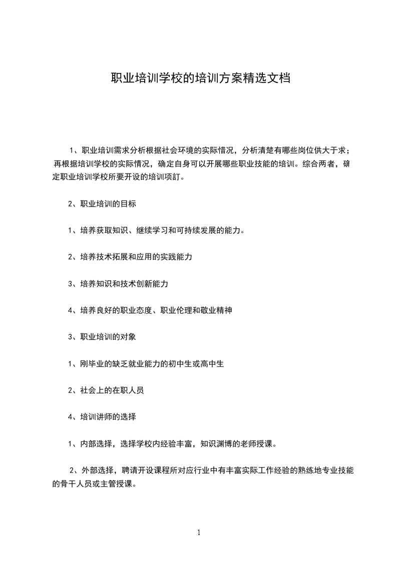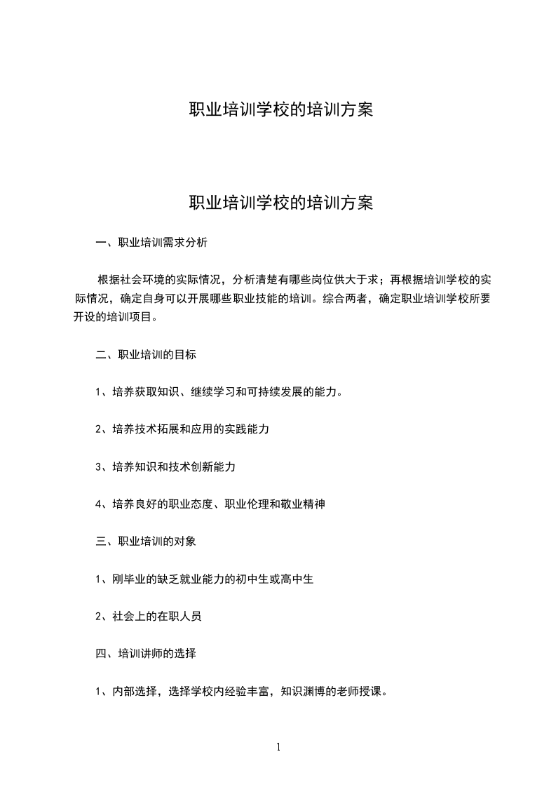 职业培训学校的培训方案