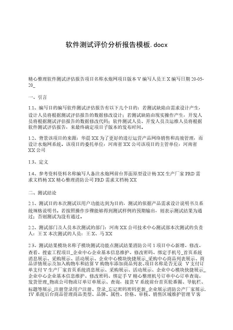 c.本文件中各处引用的文件、资料,包括所要用到的软件开发标准。列出这些文件的标题、文件编号、发表日期和出版单位,说明能够得到这些文件资料的来源。2测试概要