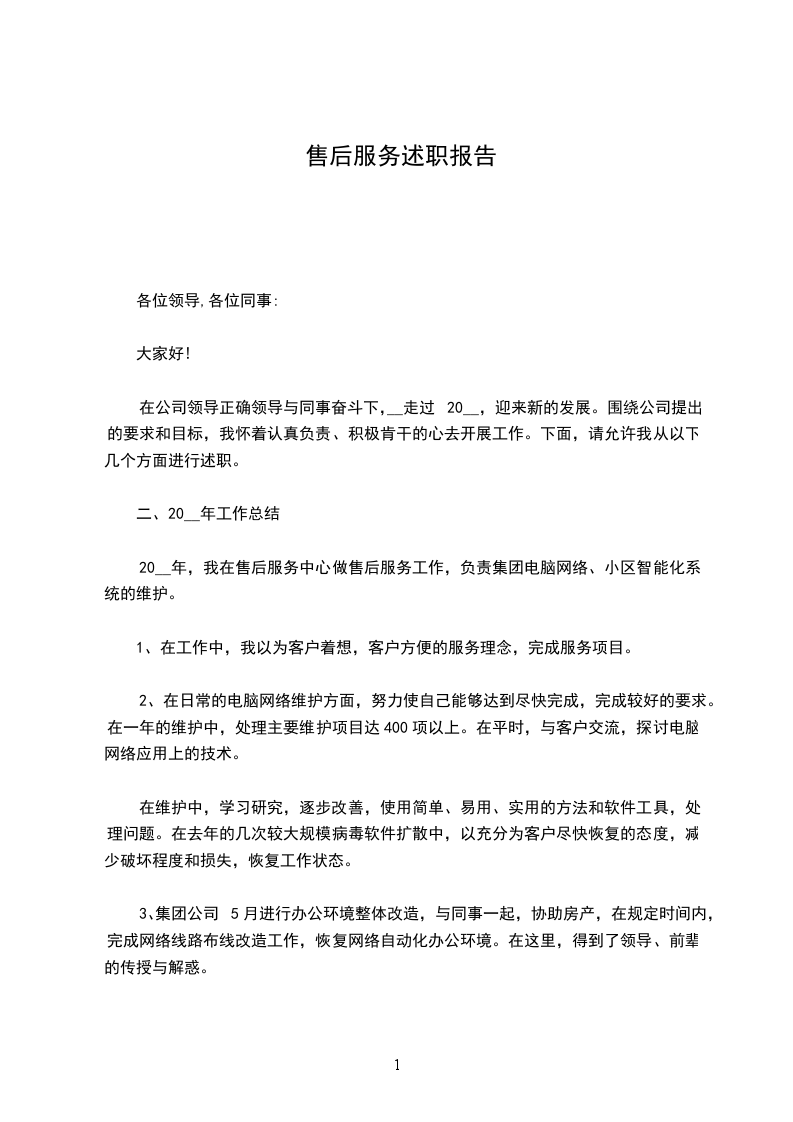 20__年,我在售后服务中心做售后服务工作,负责集团电脑网络、小区智能化系统的维护。